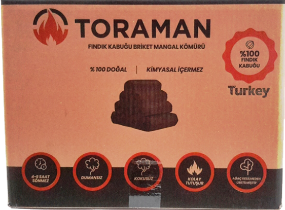 Bu ürün Ağaç kesilmeden Bitkisel atık olan Fındık Kabuklarının Karbonize edilerek preslenmesiyle üretilmiştir. Bağlayıcı olarak gıda nişastası kullanılmış olup içeriğinde hiçbir kimyasal madde bulunmamaktadır.